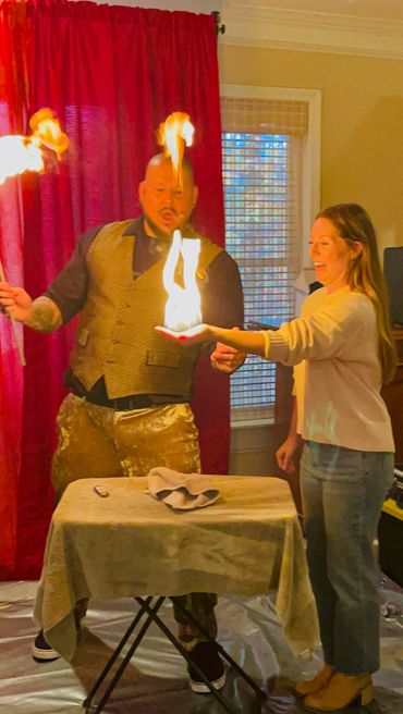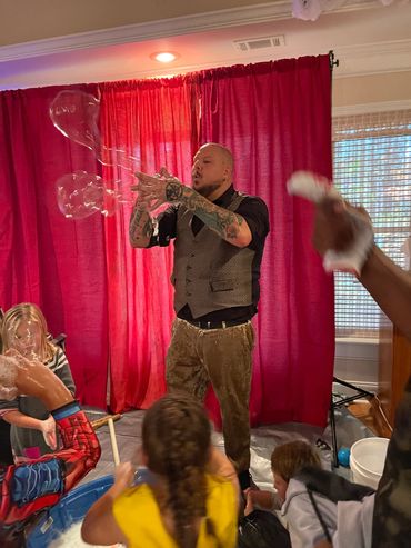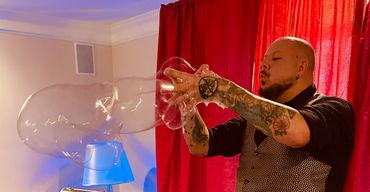 Dive into a world of whimsy with The Amazing Ziggy's bubble-themed magic extravaganza! Watch in amazement as Ziggy concocts a magical soapy solution, enchanting the audience with a mesmerizing array of bubble-themed tricks. This indoor spectacle ensures an optimal experience, shielding Ziggy's magical prowess from the unpredictable outdoor winds. Ziggy goes the extra mile, safeguarding the venue's flooring with a protective tarp to contain the bubbly excitement.
