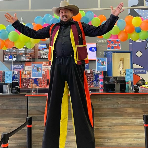 Ziggy The Clown towers over the crowds as he roams around your event walking on Stilts 10 feet Tall. Ziggy offers tons of costume options as well.